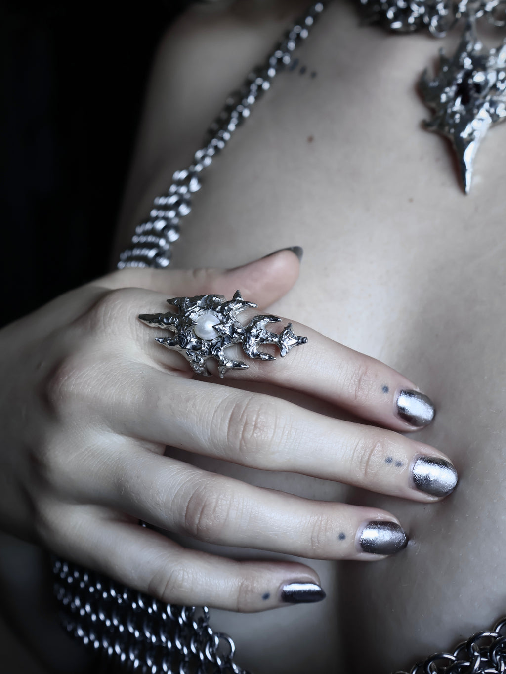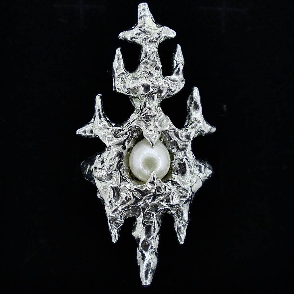 One-of-a-kind pearl ring. An organic interpretation of castle silhouettes.